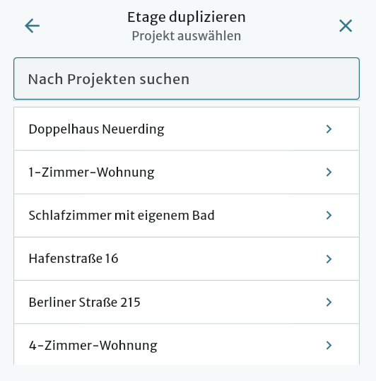 - Etage von einem Projekt in ein anderes kopieren