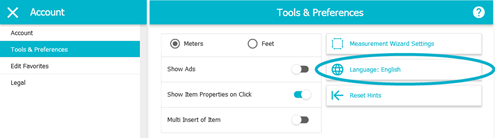 Sie können die Sprache in der RoomSketcher App ändern. Zur Auswahl stehen Deutsch, Englisch (English), Schwedisch (Svenska), Norwegisch (Norsk) und Dänisch (Dansk).