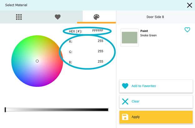 - Geben Sie einen Hex- oder RGB-Farbcode ein oder klicken Sie auf das Farbrad, um eine Farbe auszuwählen.