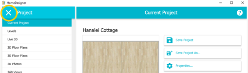 - To delete the level containing the copied project, click the yellow Menu button and then under Project, click Properties.