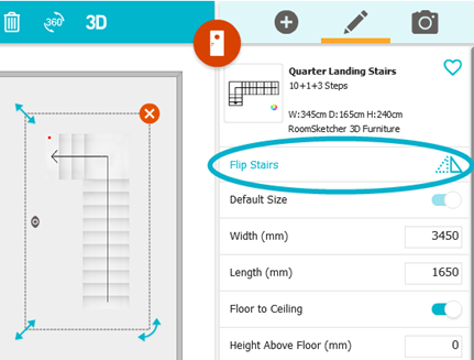 • To adjust the horizontal direction of the stair (for example, flip the stair so it curves to the left vs the right), click Flip Stairs.