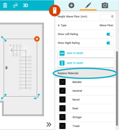 3. Under Replace Materials on the right, click any stair element.
